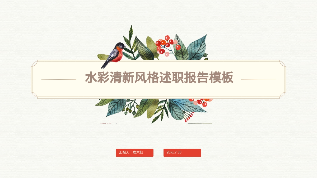 PPT名称:水彩清新风格述职报告模板